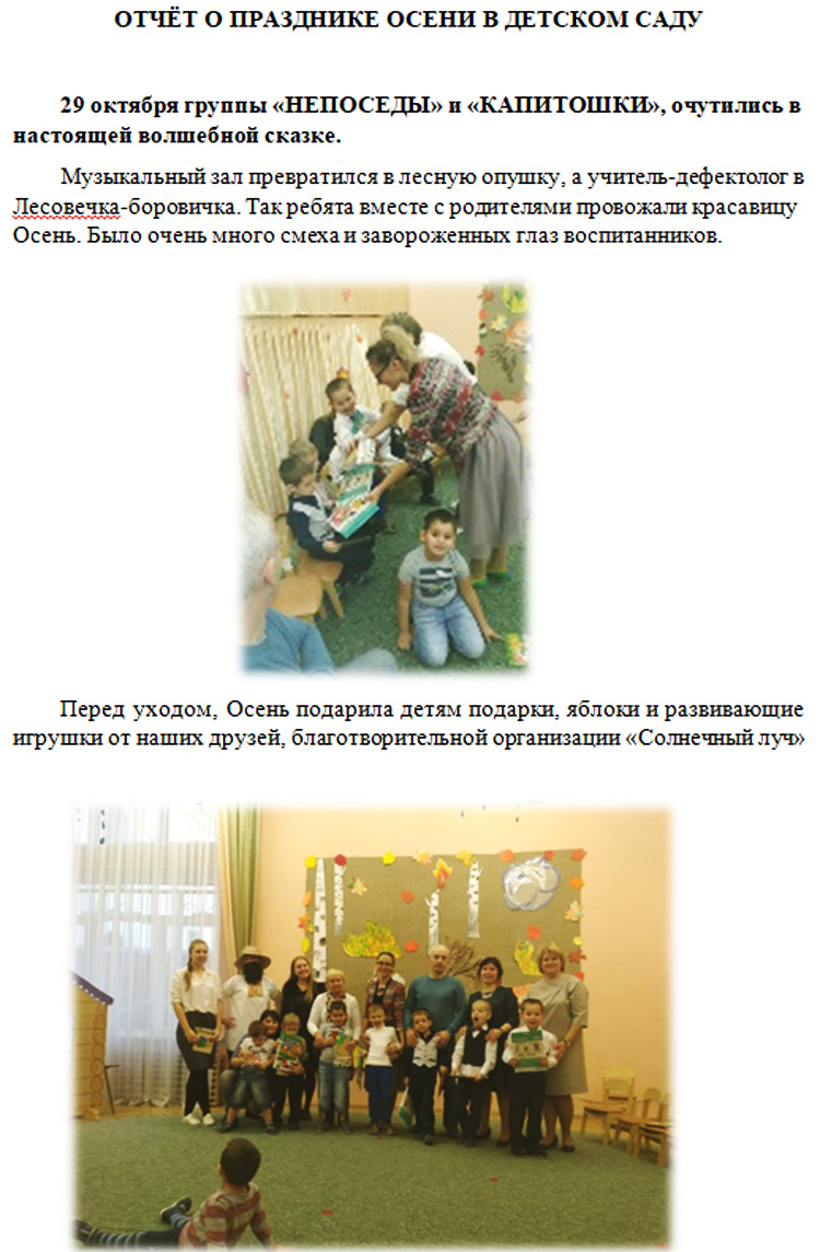 За систематическую благотворительную помощь, поддержку и внимание оказанное нашим малышам
